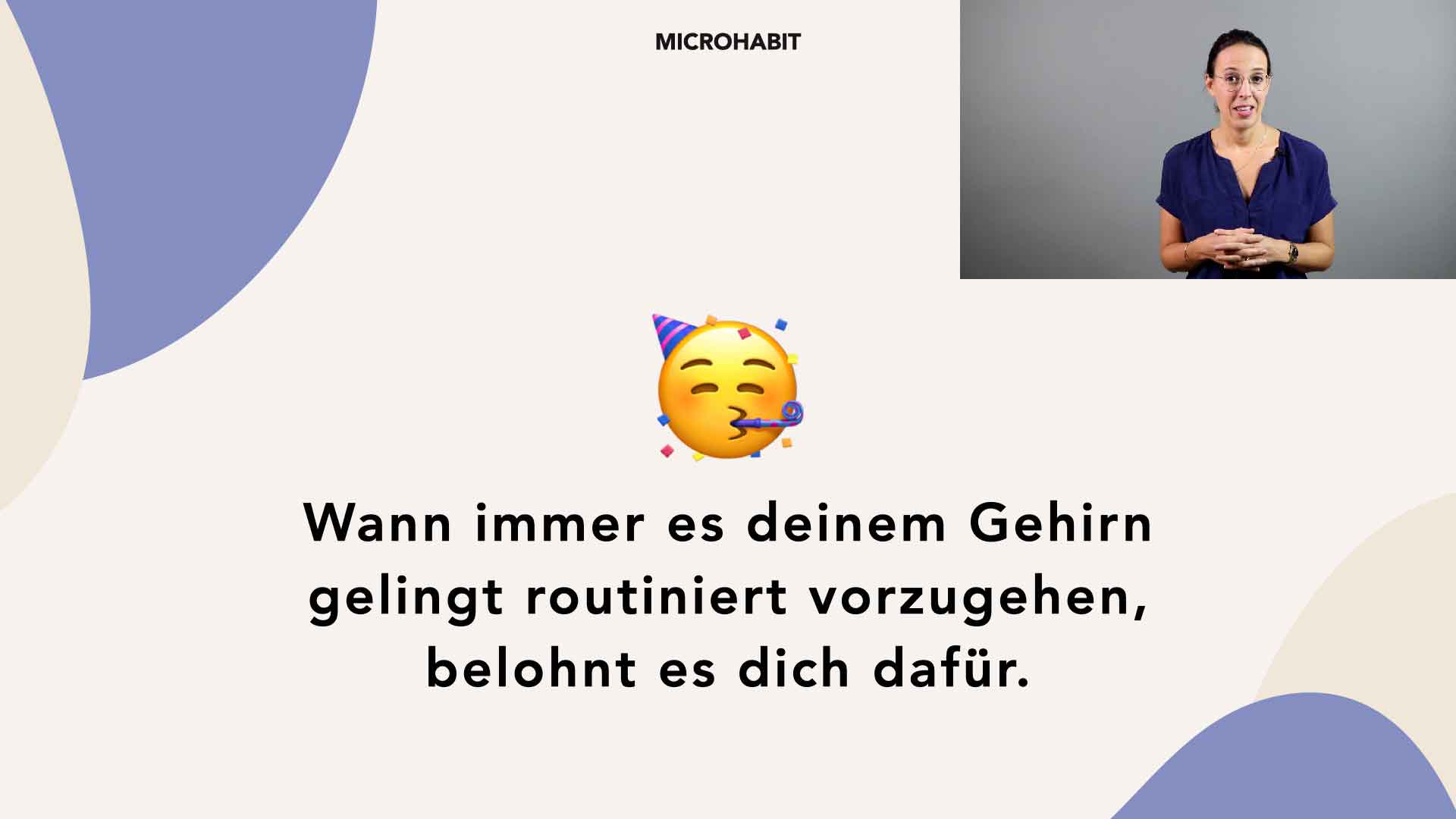 Im Kurs zeigt dir Miriam Junge, wie du die Methode der Micro habits, mit Hilfe von einfachen, leicht umzusetzenden Übungen und Routinen, in deinem Alltag umsetzen kannst. Miriam unterstützt dich dabei, dein Verhalten zu reflektieren und neue Perspektiven einzunehmen. Der Kurs legt dabei einen besonderen Fokus auf das Üben von Achtsamkeit. Denn, wenn wir achtsam sind und ein Bewusstsein dafür entwickeln, wie es uns gerade geht, können wir leichter neue Gewohnheiten in unseren Alltag integrieren und dadurch langfristig zufriedener werden.